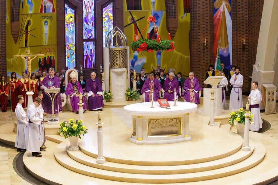 kościół otwarty jest co najmniej pół godziny przed każdą Mszą św. i nabożeństwem